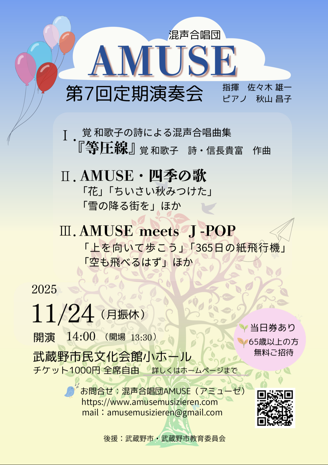 混声合唱団AMUSE(アミューゼ)は、武蔵野市で活動する合唱団です。